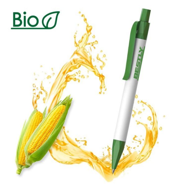 Ekologiškas, suyrančio plastiko tušinukas. PLA - tai medžiaga gaminama iš kukurūzų pluošto, ji yra visiškai suyranti kompostuojant per 6 mėnesius.