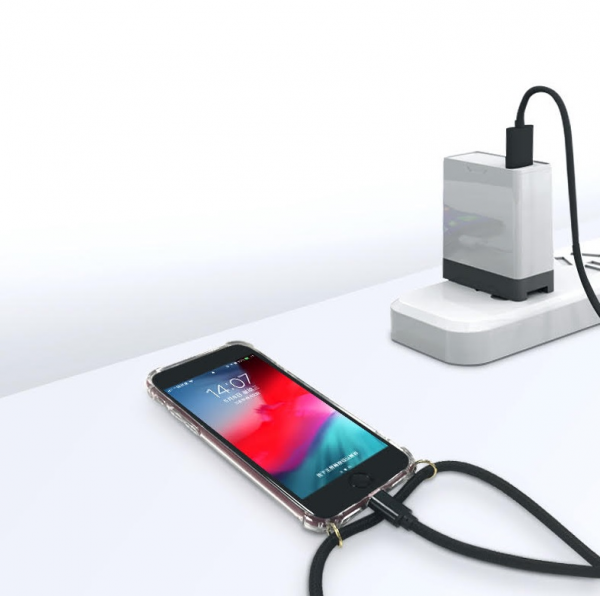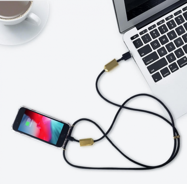 Telefono dėklas su krovimo laidu - du viename. Laidas tinka ne tik krovimui, bet ir telefono nešiojimui, tuo pat metu gali būti kaip papuošalas, garderobo detalė.