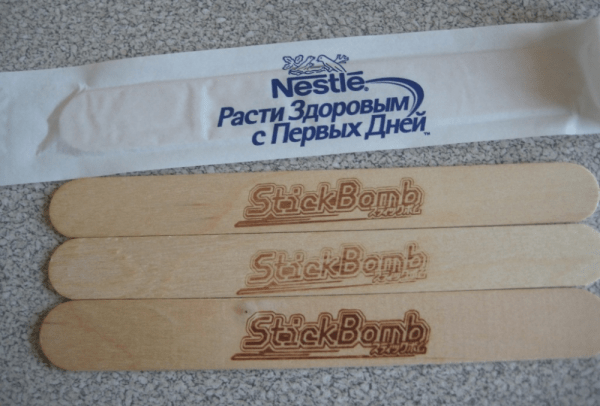 Mediniai sterilūs pagaliukai. Su logotipu. Gydytojams arba ledams.