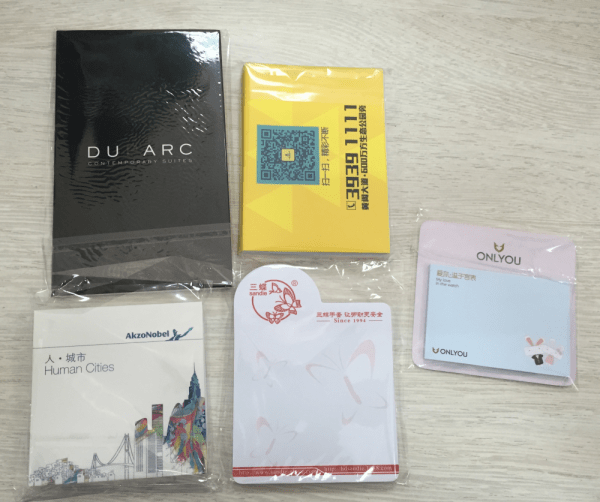 Įvairaus dydžio lipnūs lapeliai. Su jūsų norima spauda ir dizainu.